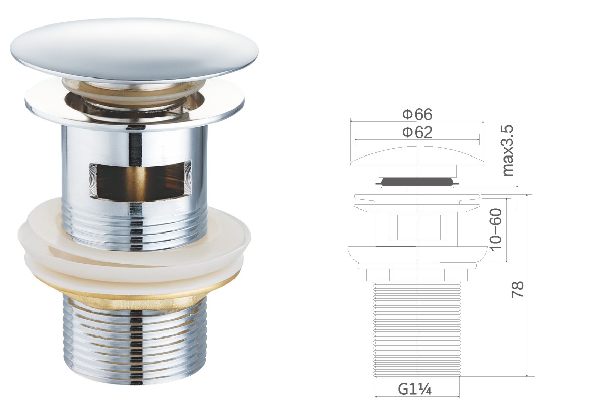 Desagüe de latón para lavabo público de 1 1/4" fixed cover not clic-clac