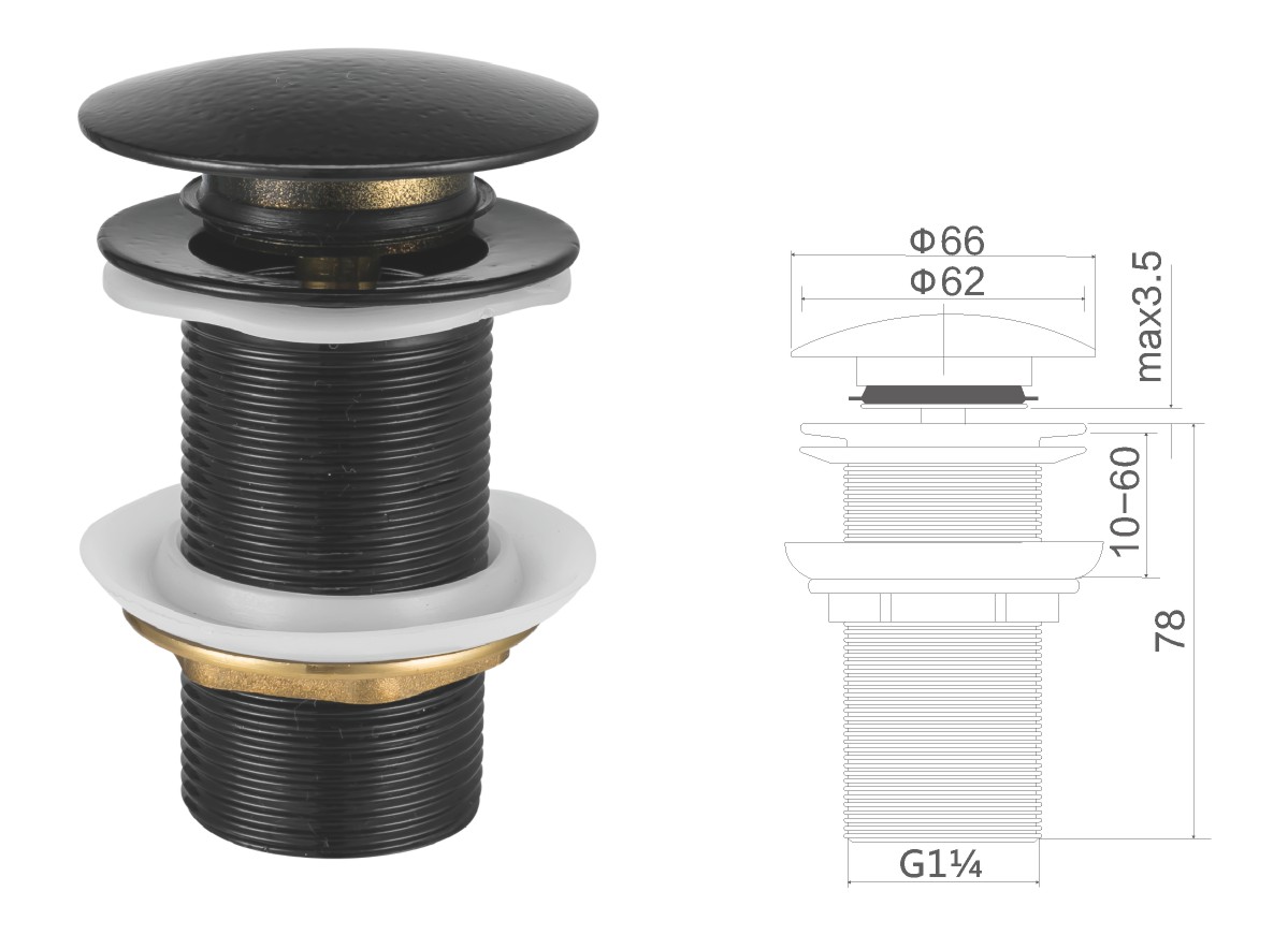 Desagüe de acero inoxidable para lavabo de 1 1/4" con tapón de gomaclic-clac