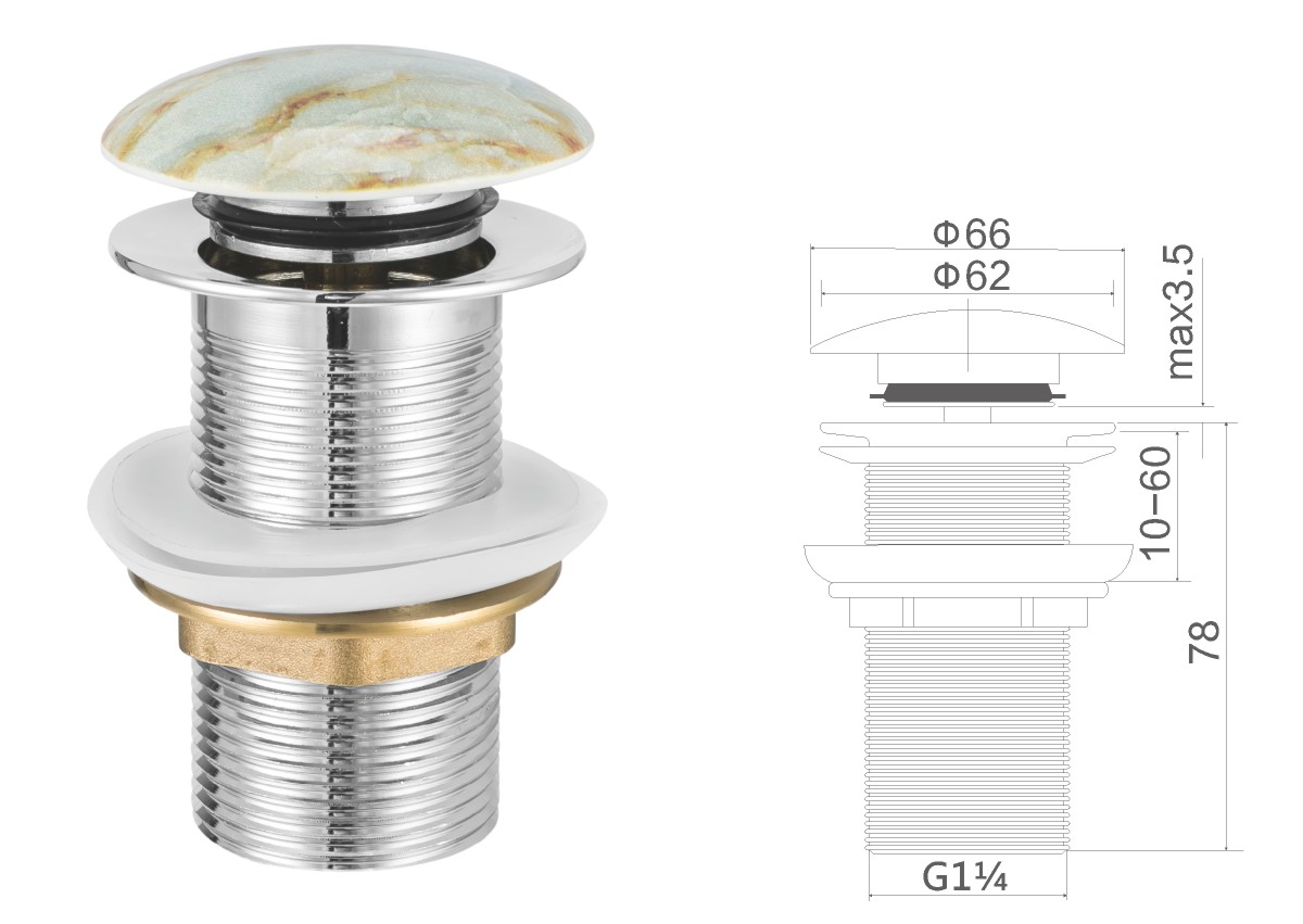 Desagüe de latón para lavabo público de 1 1/4" fixed cover not clic-clac