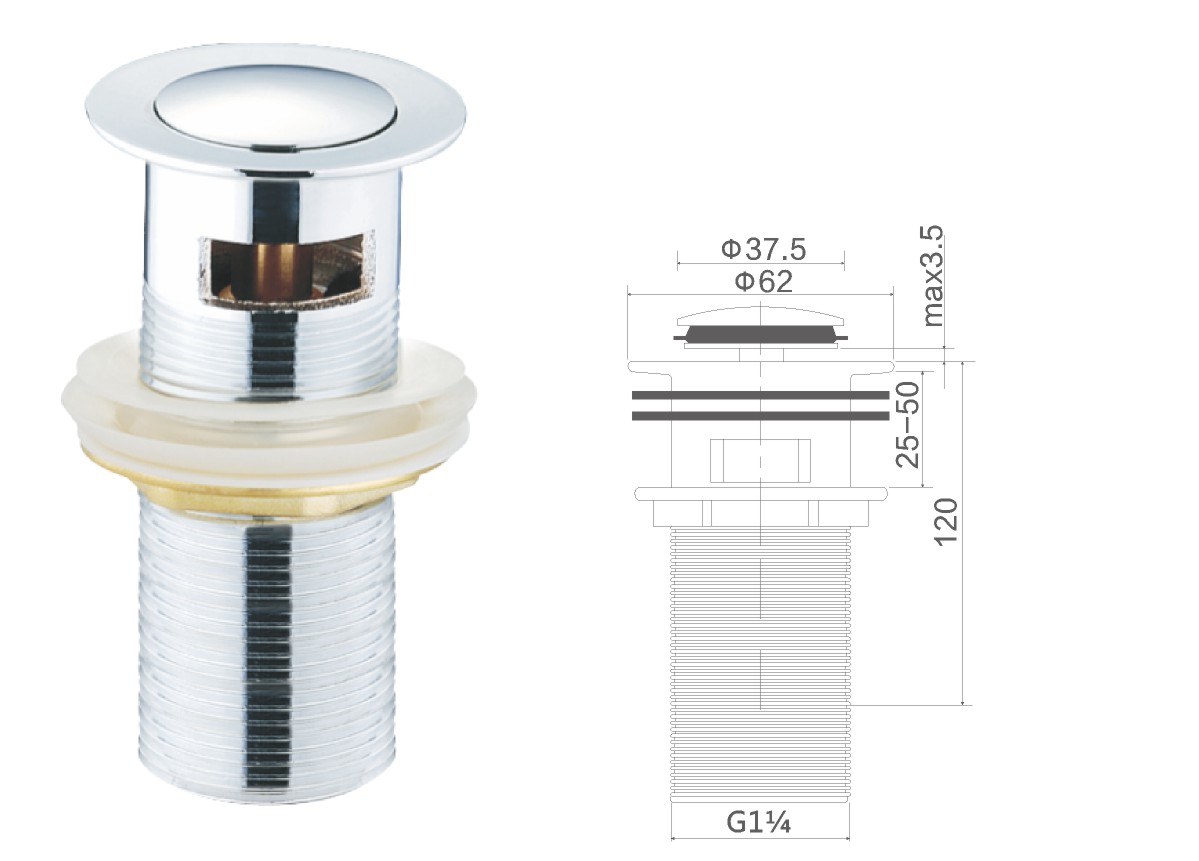 Desagüe de latón para lavabo de 1 1/4", sistema clic-clac