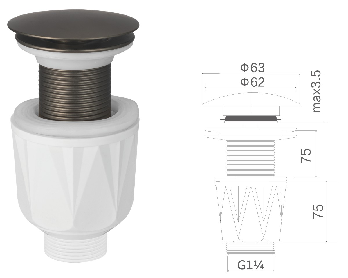 Desagüe de latón para lavabo público de 1 1/4" fixed cover not clic-clac