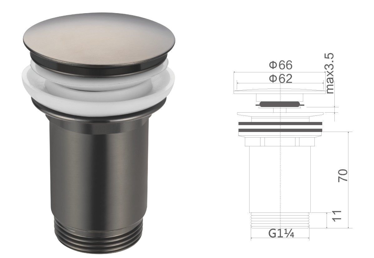 Desagüe de acero inoxidable para lavabo de 1 1/4" con tapón de gomaclic-clac