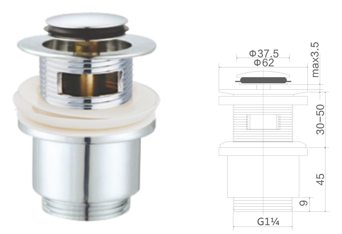Desagüe de latón para lavabo público de 1 1/4" fixed cover not clic-clac