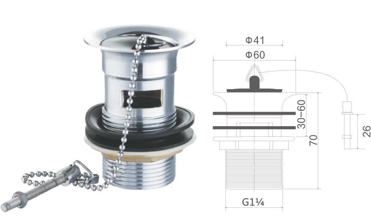 Desagüe de acero inoxidable para lavabo de 1 1/4" con tapón de gomaclic-clac