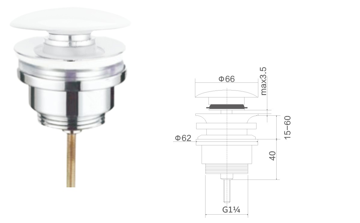 Desagüe de acero inoxidable para lavabo de 1 1/4" con tapón de gomaclic-clac