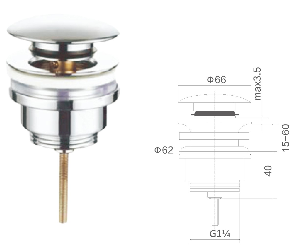 Desagüe de latón para lavabo de 1 1/4", sistema clic-clac