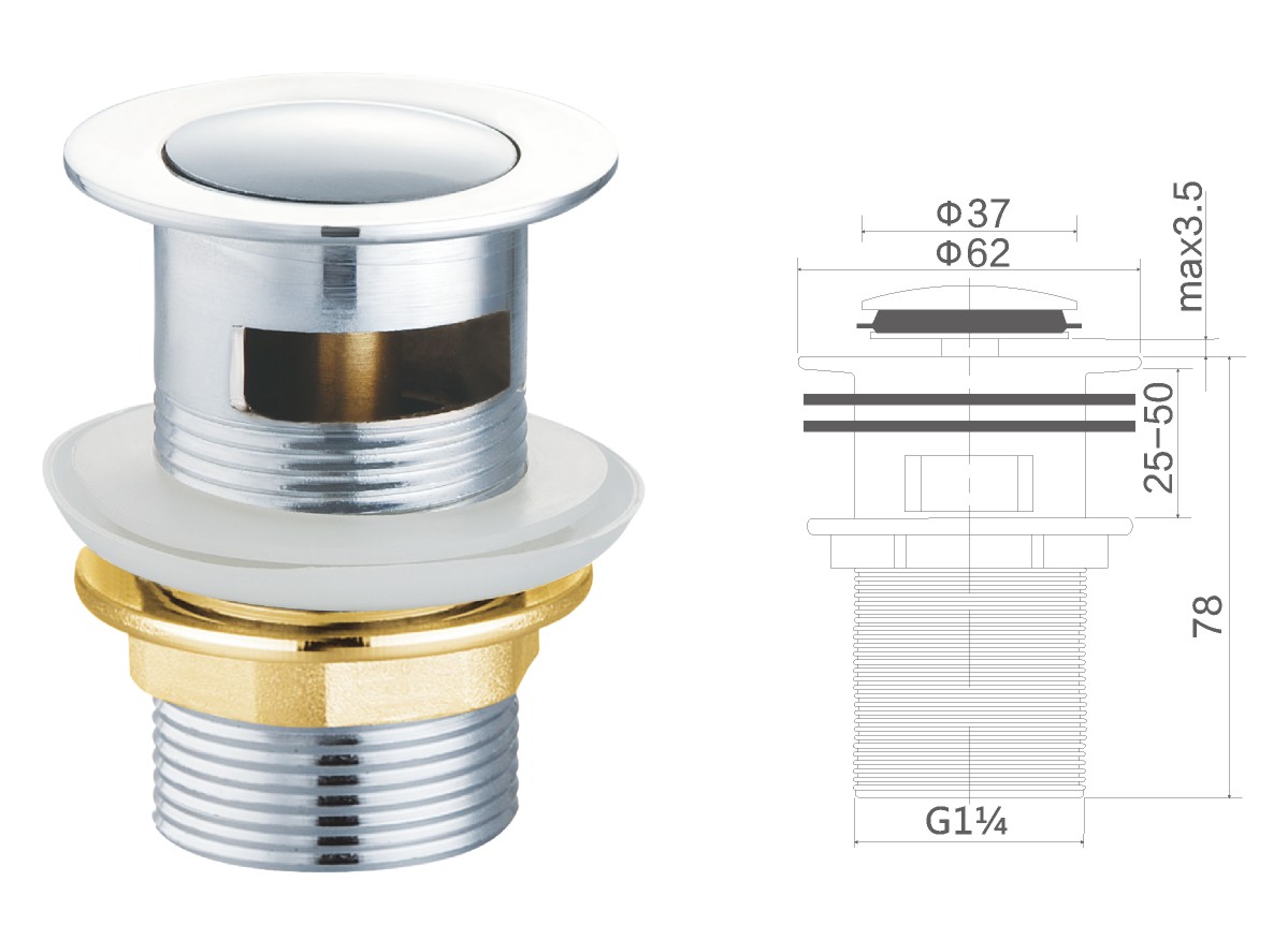 Desagüe de latón para lavabo público de 1 1/4" fixed cover not clic-clac