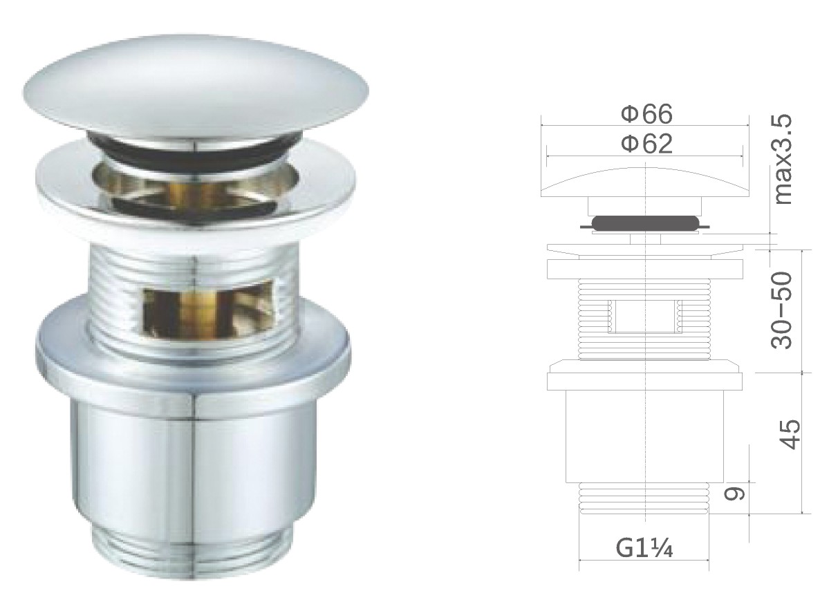 Desagüe de latón para lavabo público de 1 1/4" fixed cover not clic-clac