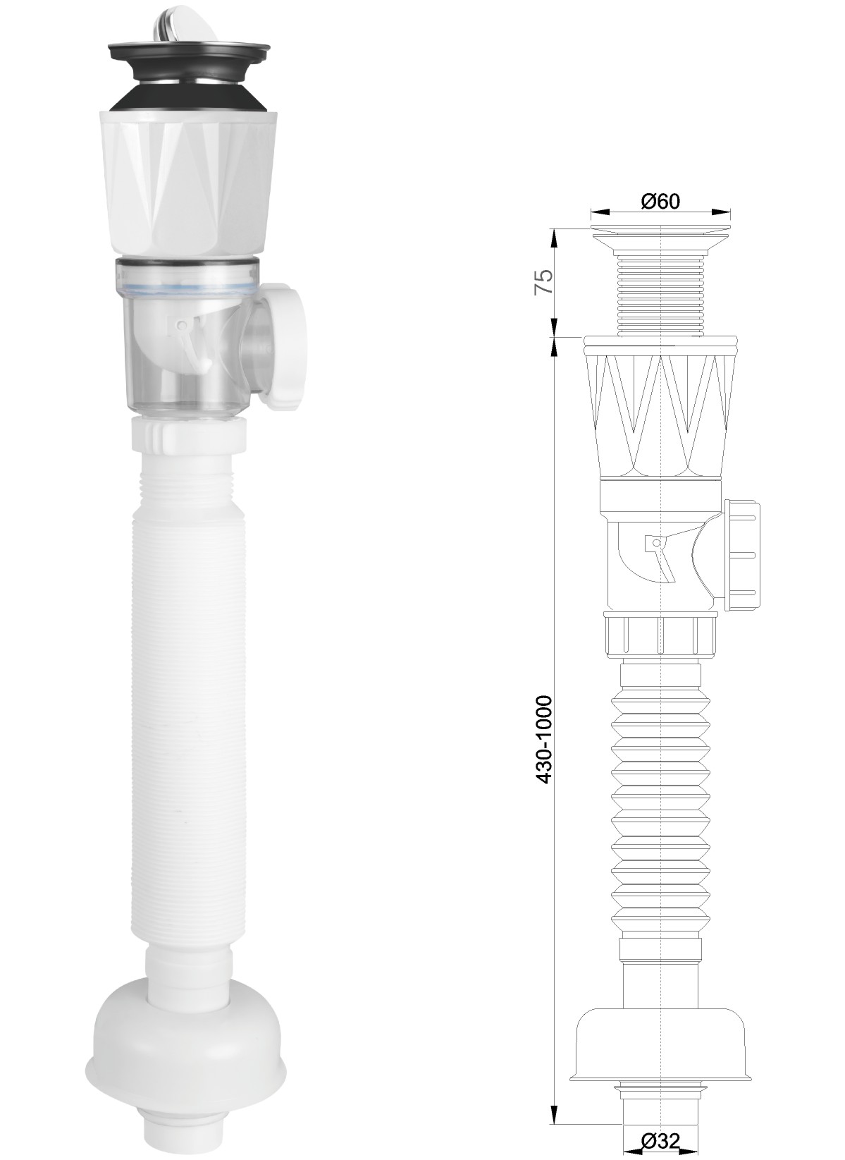 Desagüe de acero inoxidable para lavabo de 1 1/4" con tapón de gomaclic-clac