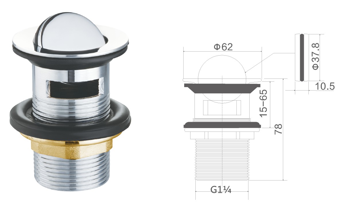 Desagüe de latón para lavabo público de 1 1/4" fixed cover not clic-clac