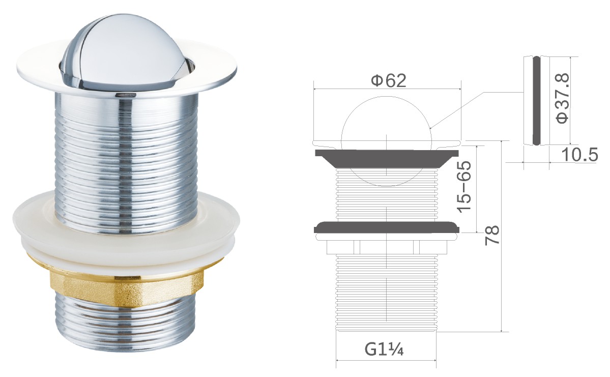 Desagüe de latón para lavabo de 1 1/4", sistema clic-clac