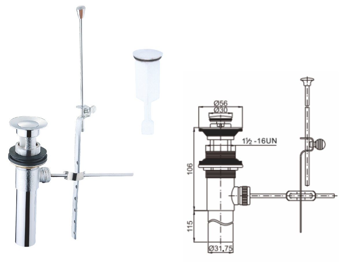 Desagüe de acero inoxidable para lavabo de 1 1/4" con tapón de gomaclic-clac