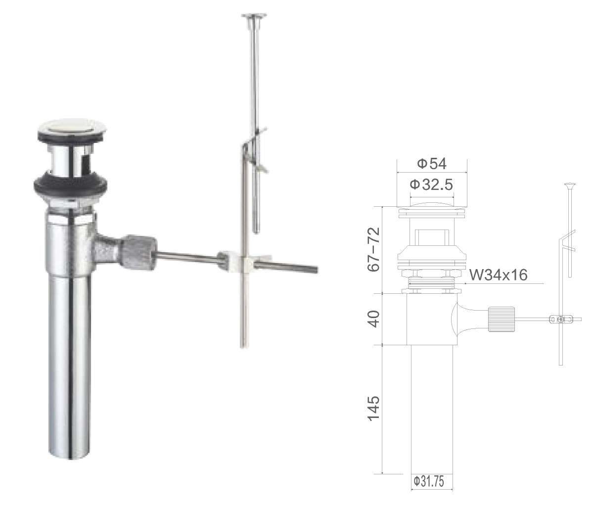 Desagüe de acero inoxidable para lavabo de 1 1/4" con tapón de gomaclic-clac