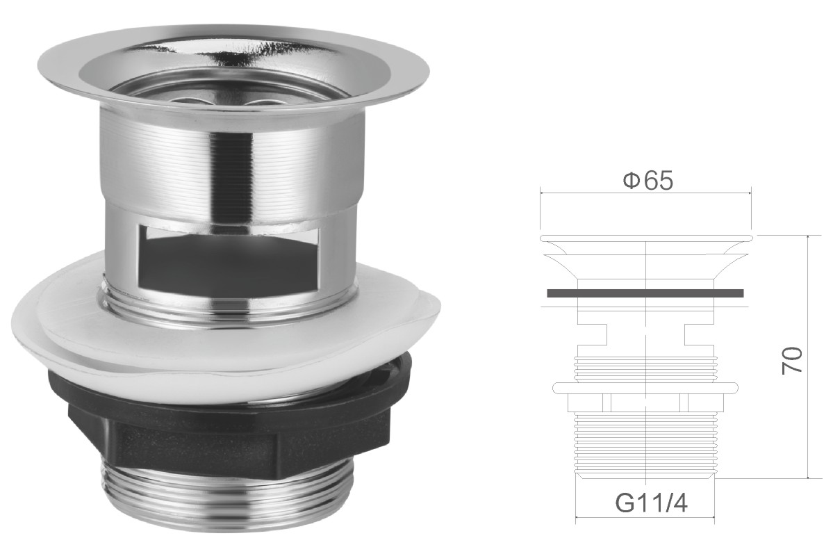 Desagüe de latón para lavabo público de 1 1/4" fixed cover not clic-clac
