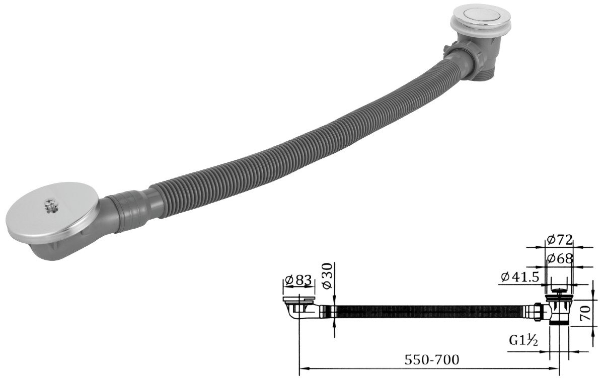 Desagüe de acero inoxidable para lavabo de 1 1/4" con tapón de gomaclic-clac