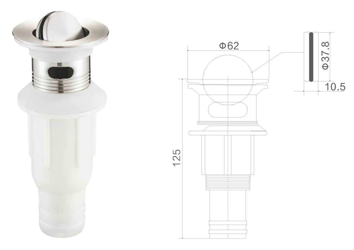 Desagüe de acero inoxidable para lavabo de 1 1/4" con tapón de gomaclic-clac