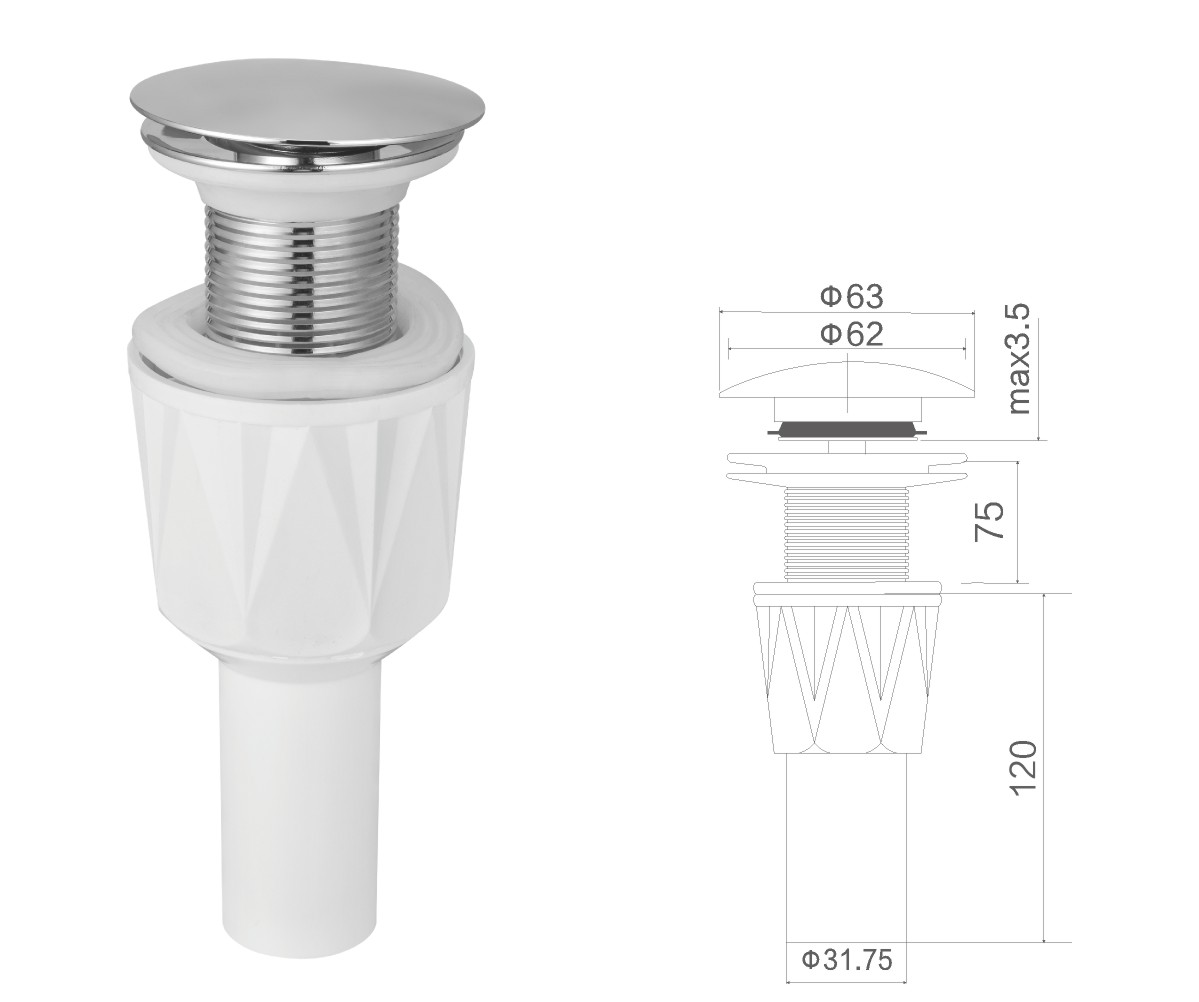 Desagüe de latón para lavabo público de 1 1/4" fixed cover not clic-clac