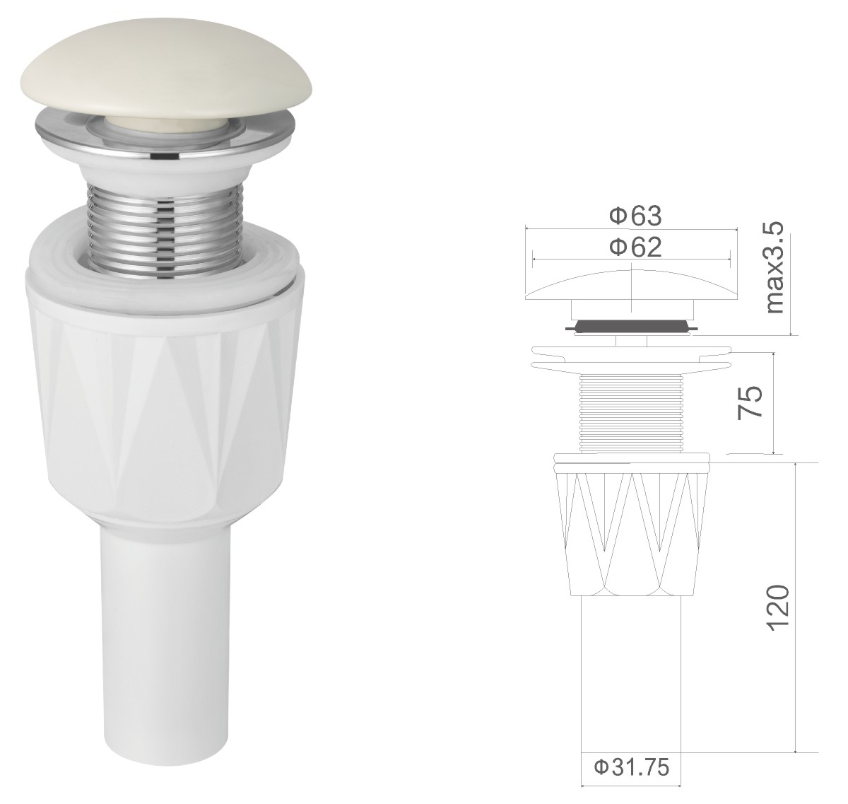 Desagüe de acero inoxidable para lavabo de 1 1/4" con tapón de gomaclic-clac