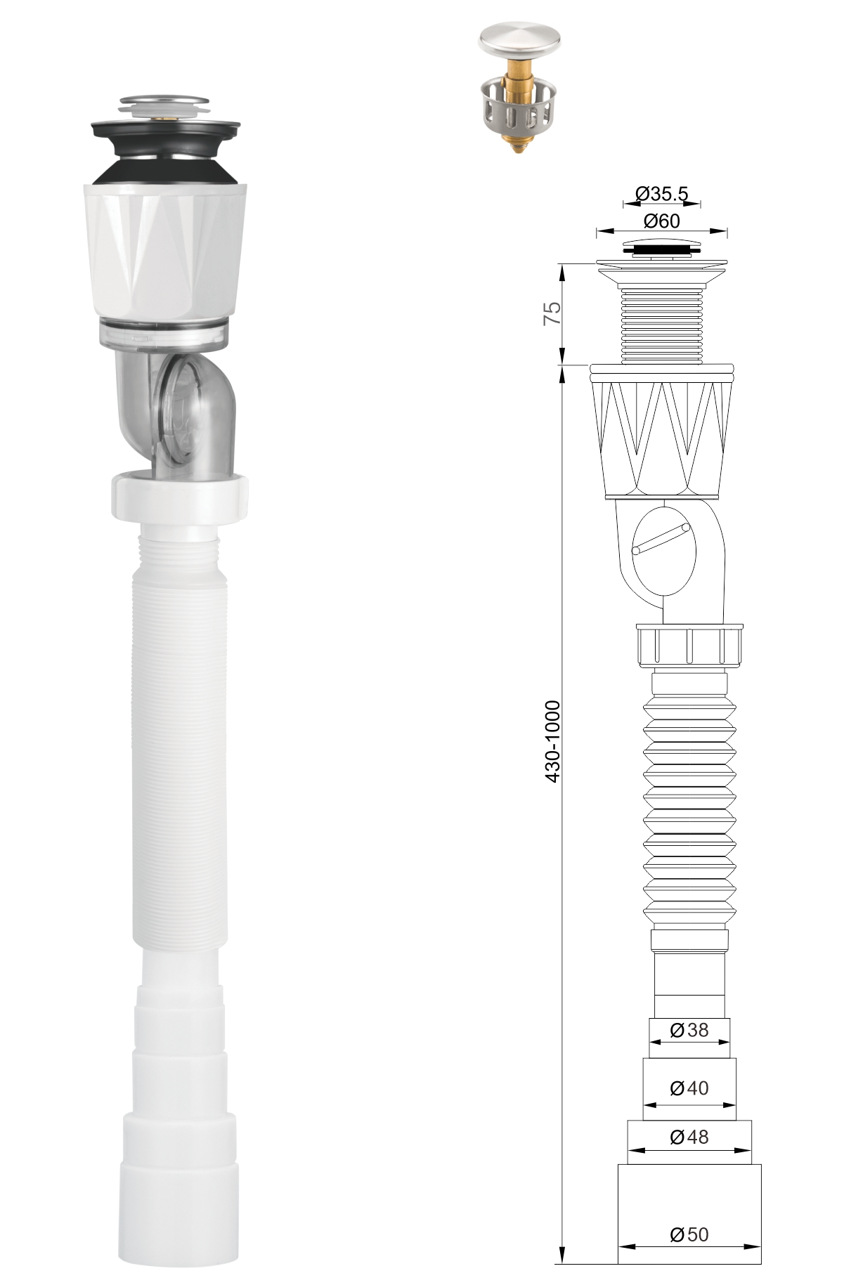 Se puede utilizar con o sin lavabo con rebosadero.