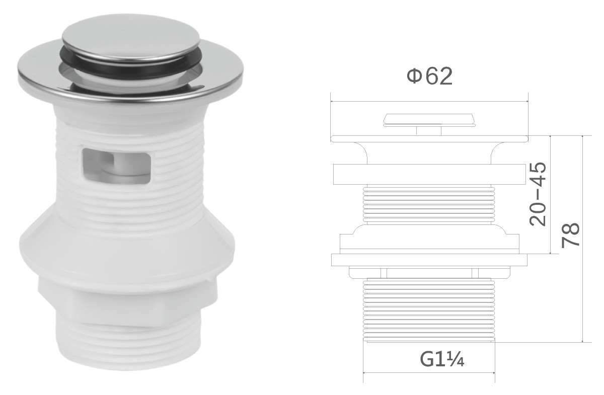 Desagüe de acero inoxidable para lavabo de 1 1/4" con tapón de gomaclic-clac