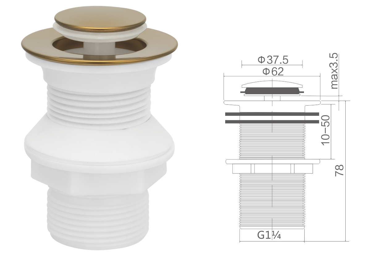 Desagüe de latón para bañera de 1 1/2", sistema clic-clac