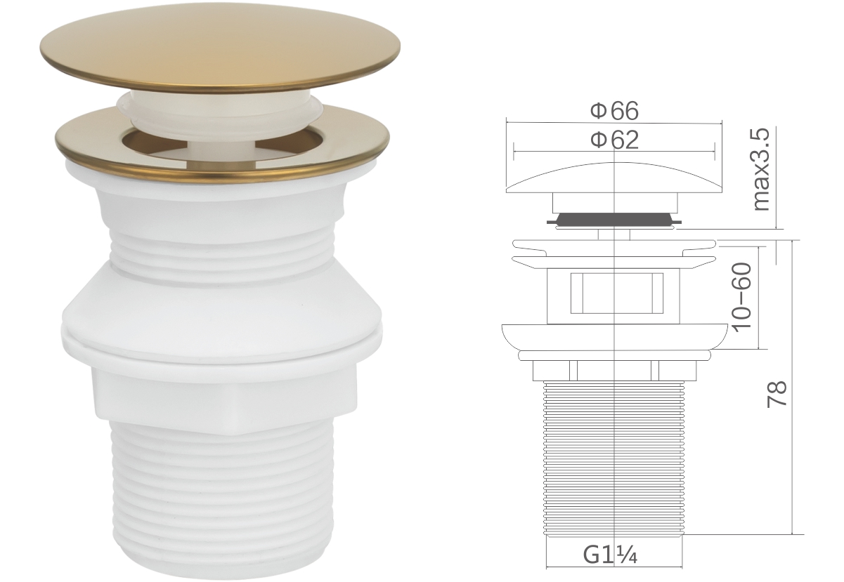 Desagüe de latón para lavabo de 1 1/4", sistema clic-clac