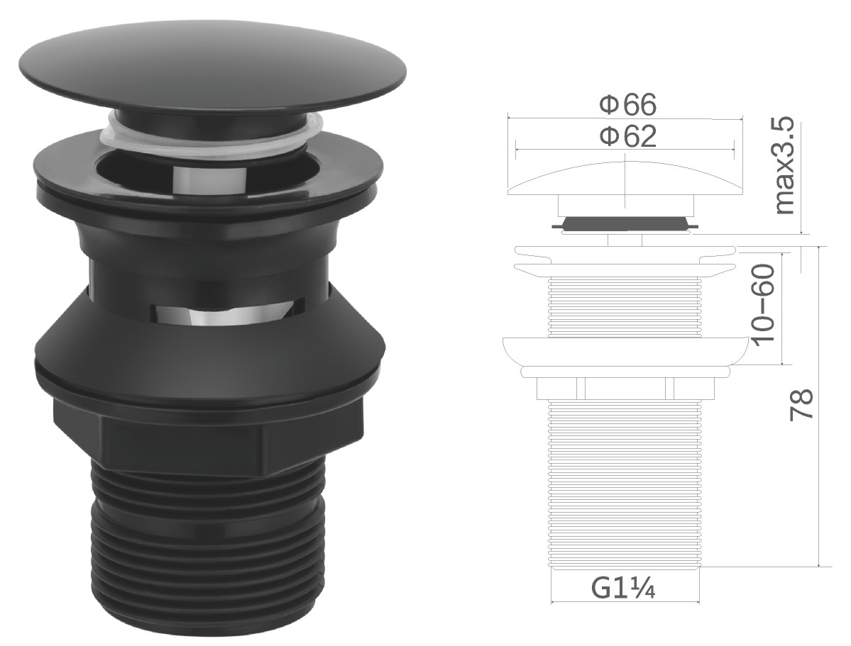 Desagüe de acero inoxidable para lavabo de 1 1/4" con tapón de gomaclic-clac