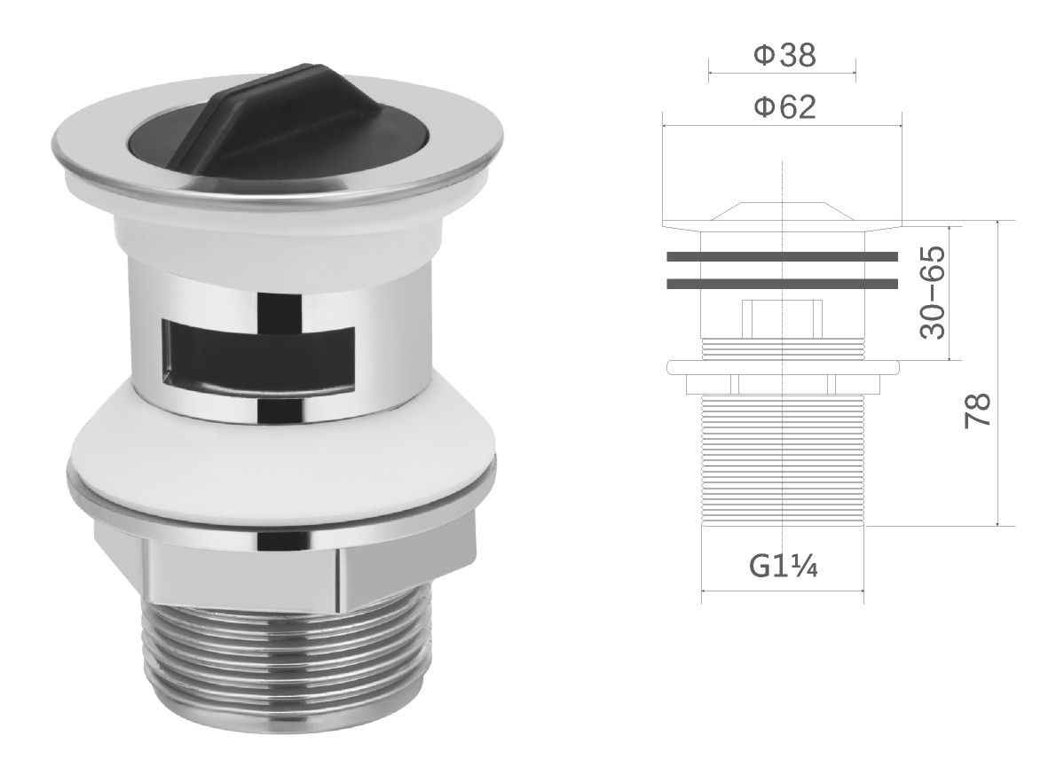 Desagüe de acero inoxidable para lavabo de 1 1/4" con tapón de gomaclic-clac