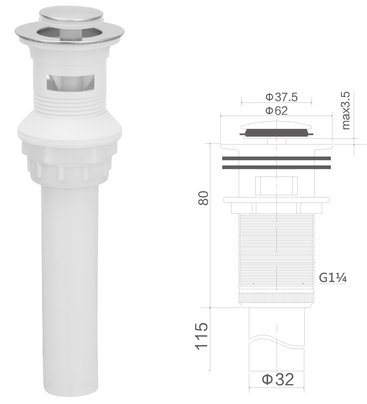 Desagüe de acero inoxidable para lavabo de 1 1/4" con tapón de gomaclic-clac