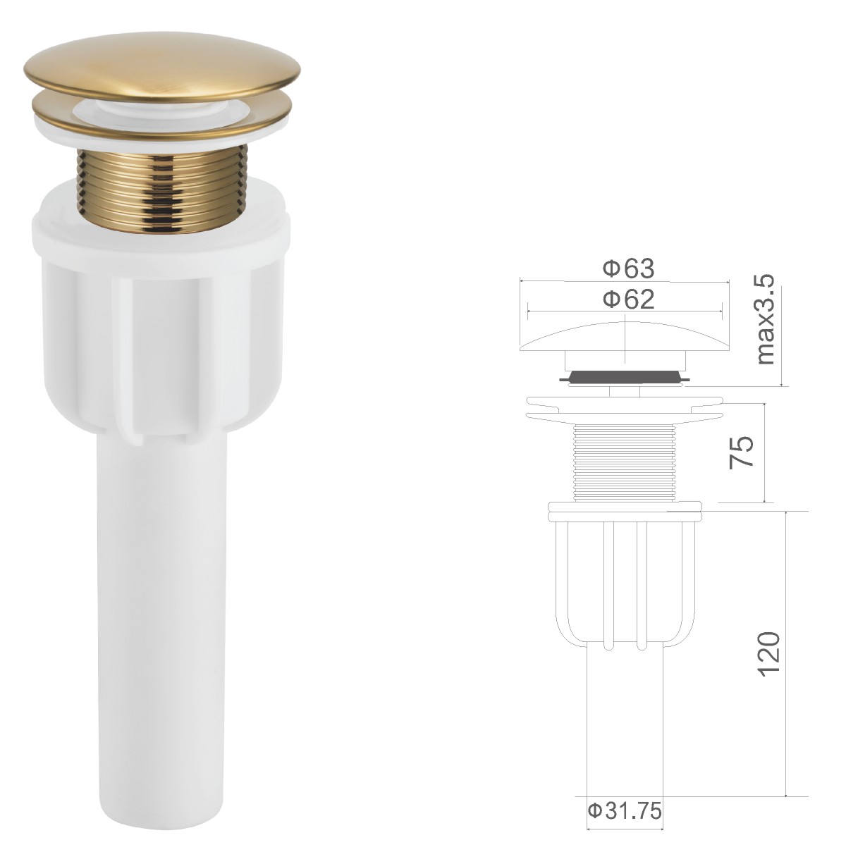 Desagüe de latón para lavabo de 1 1/4", sistema clic-clac