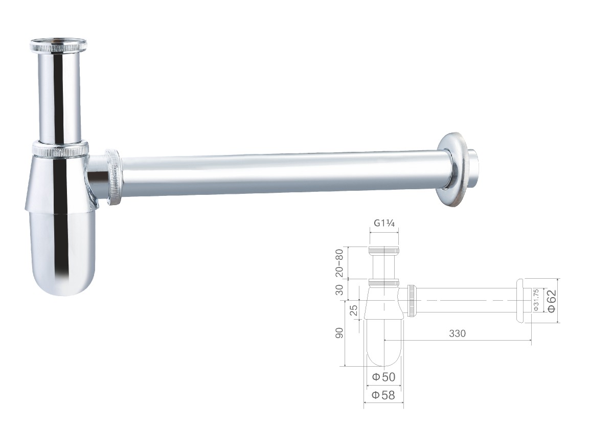 Acero inoxidable 304 siphon 1 1/4"