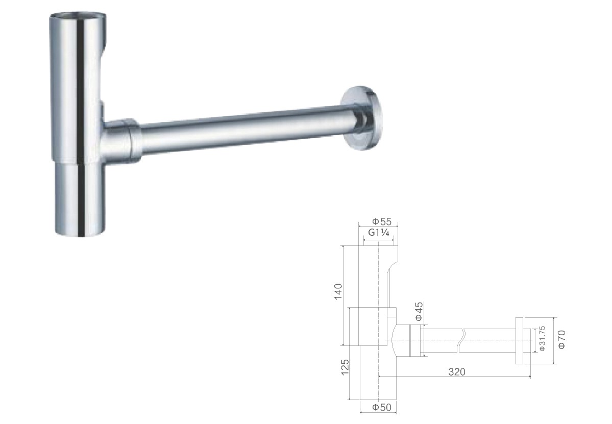 Sifón redondo de zinc con acabado en laca negra de 1 1/4"