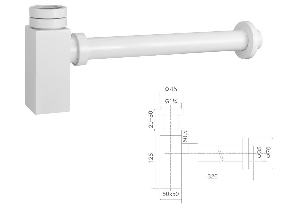 Sifón redondo de zinc con acabado en laca negra de 1 1/4"
