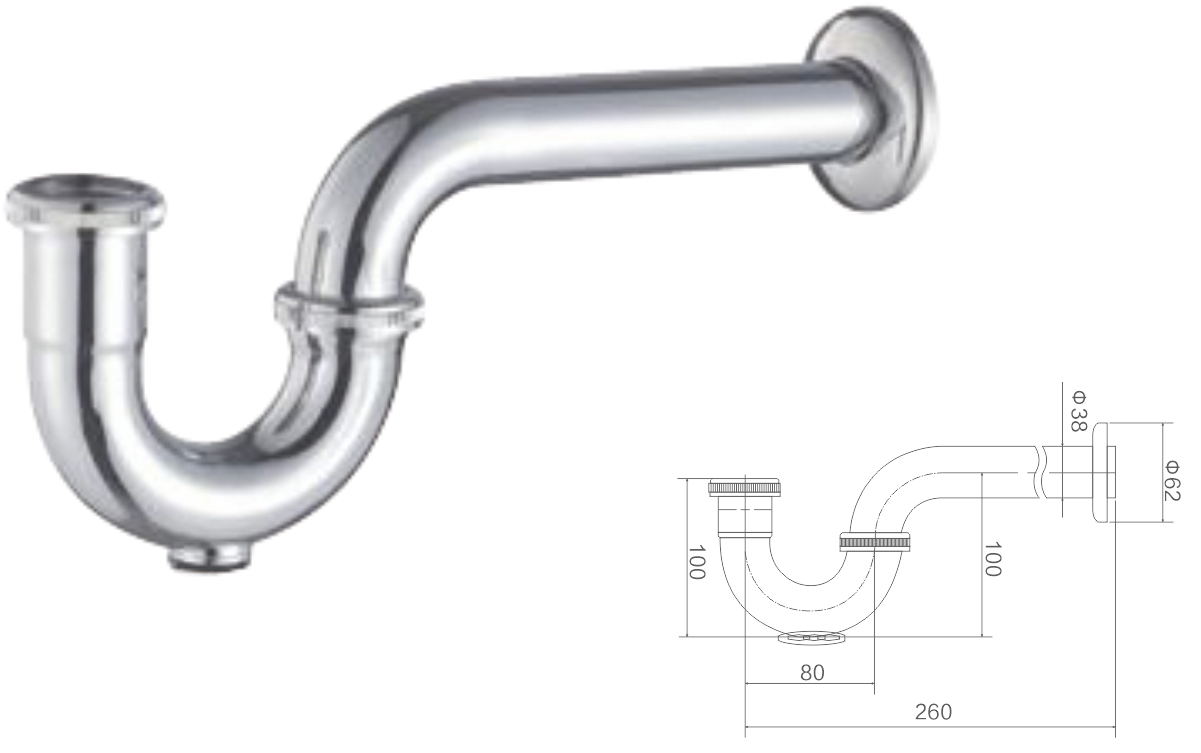 Sifón redondo de zinc con acabado en laca negra de 1 1/4"
